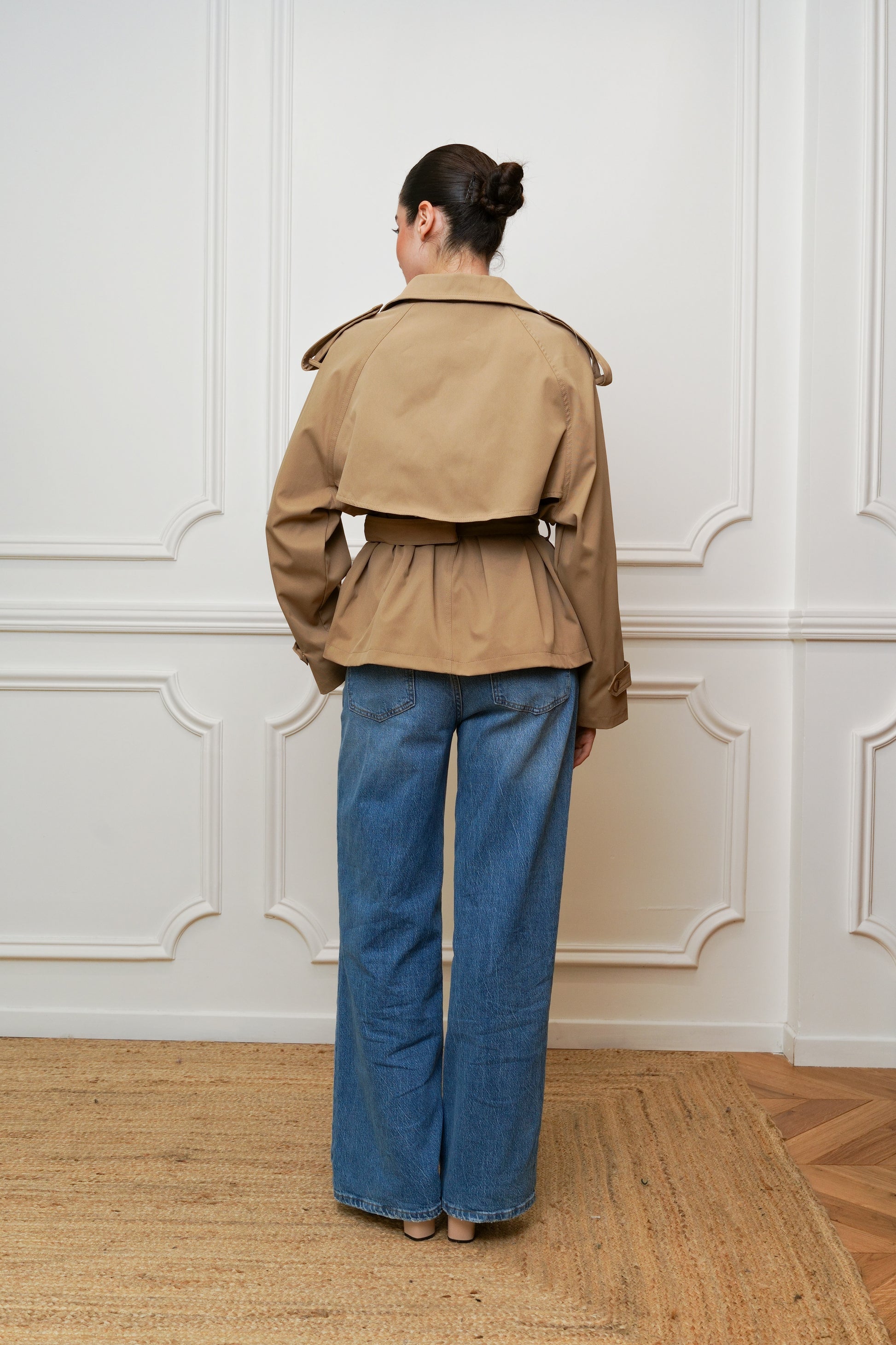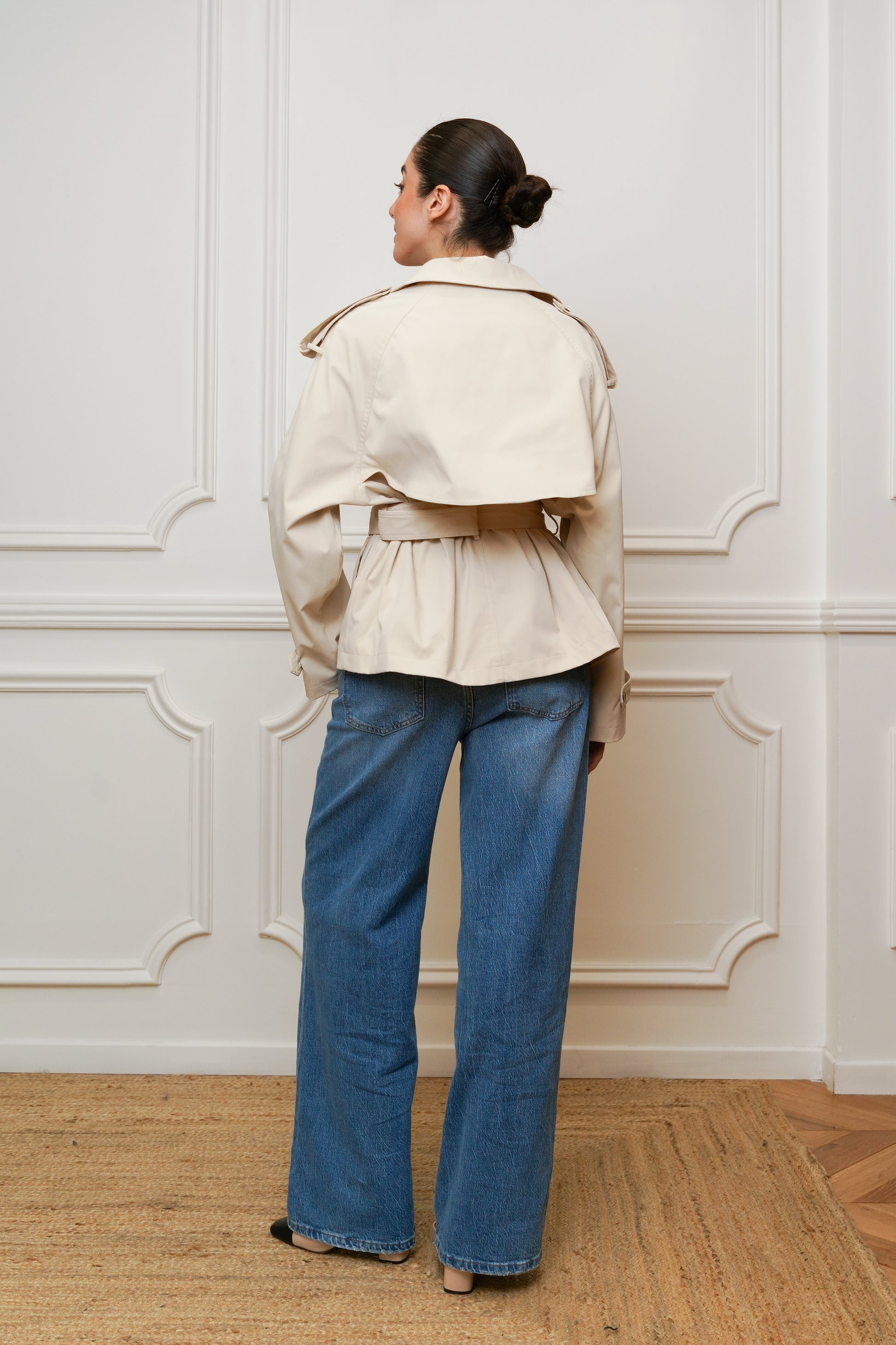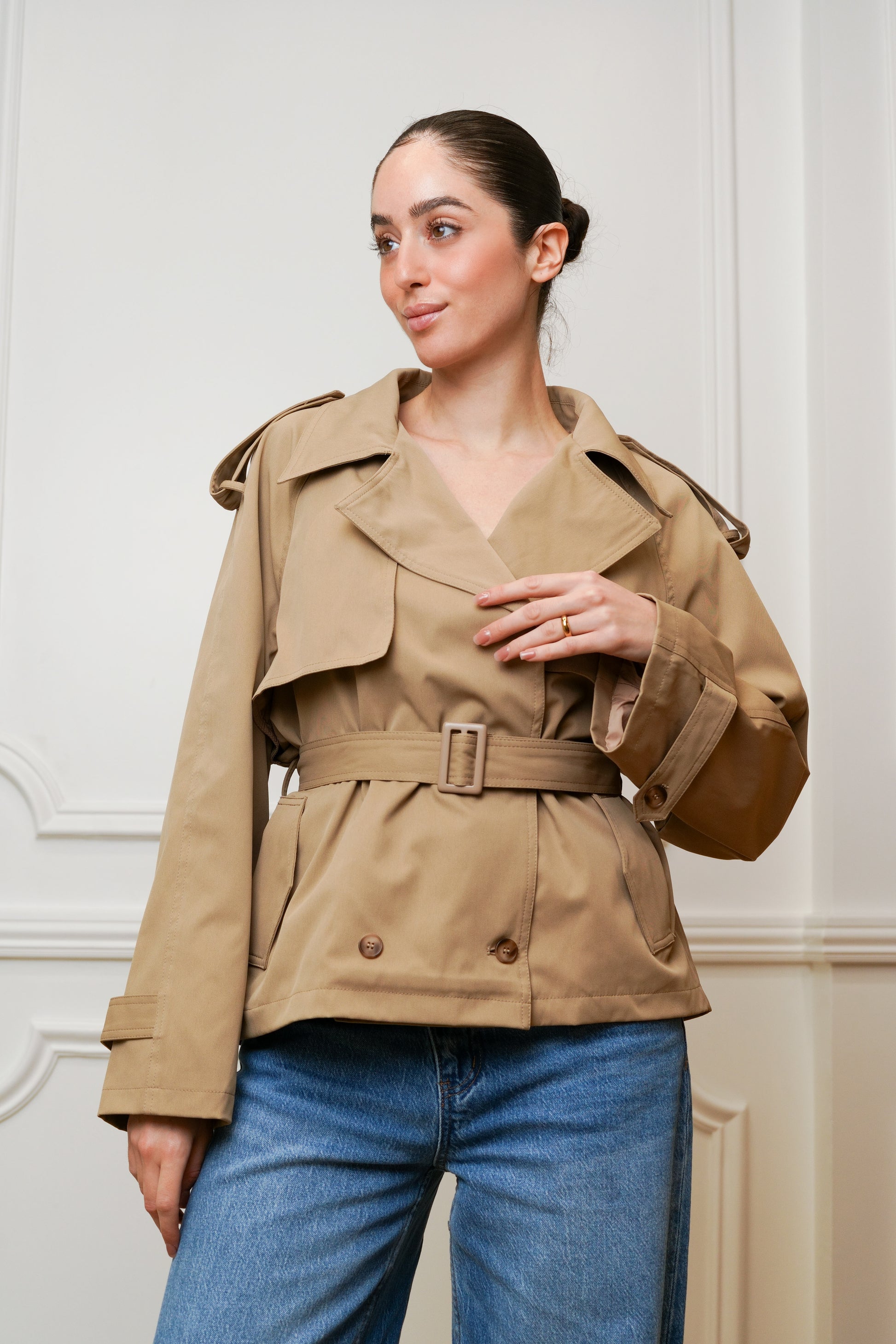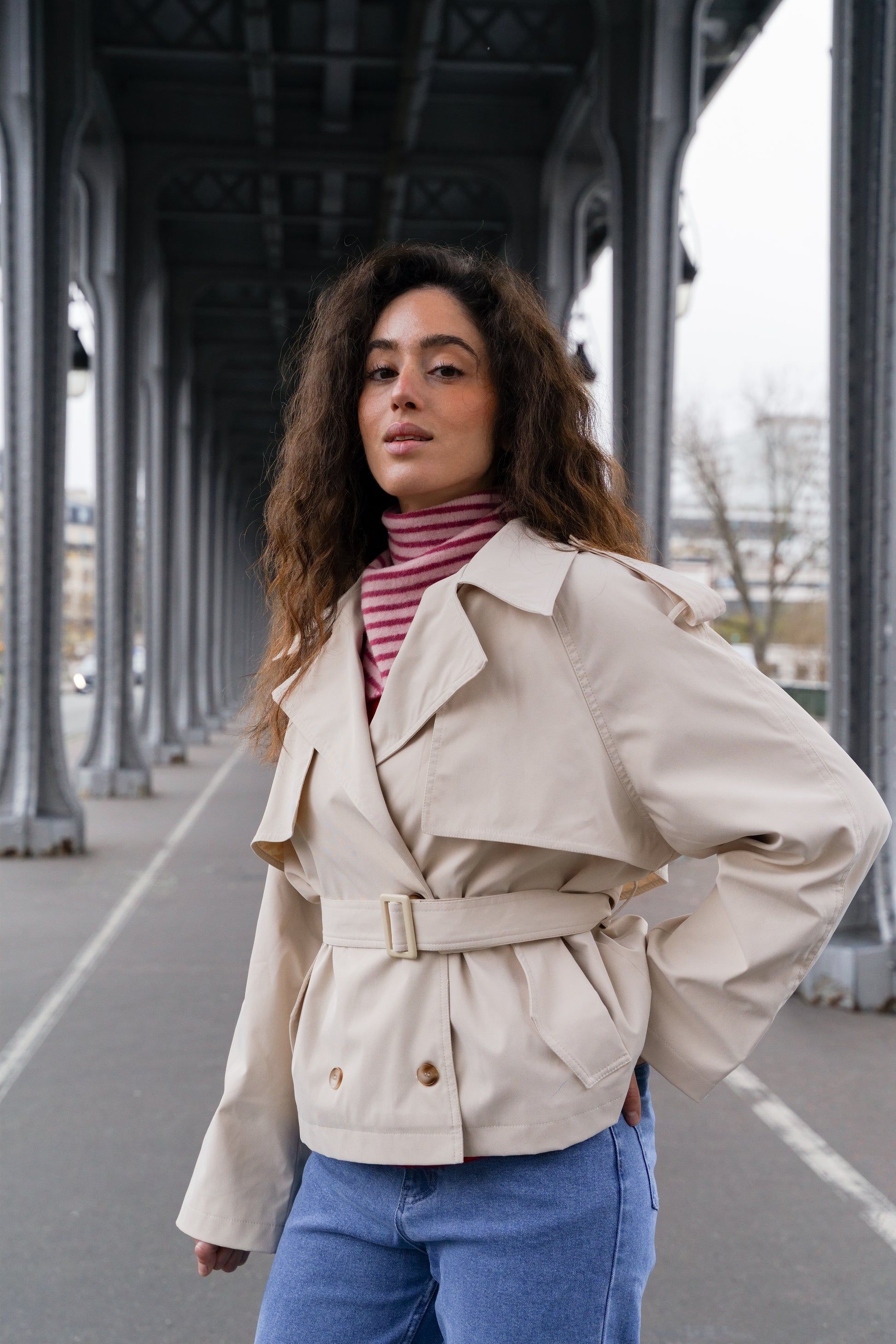 Ce trench revisite le classique du vestiaire dans une version courte, moderne et facile à porter. Sa coupe structurée et sa ceinture ajustable permettent de souligner la taille tout en conservant une allure décontractée. Idéal pour la mi-saison, il s’adapte aussi bien à un look casual qu’à une tenue plus habillée.