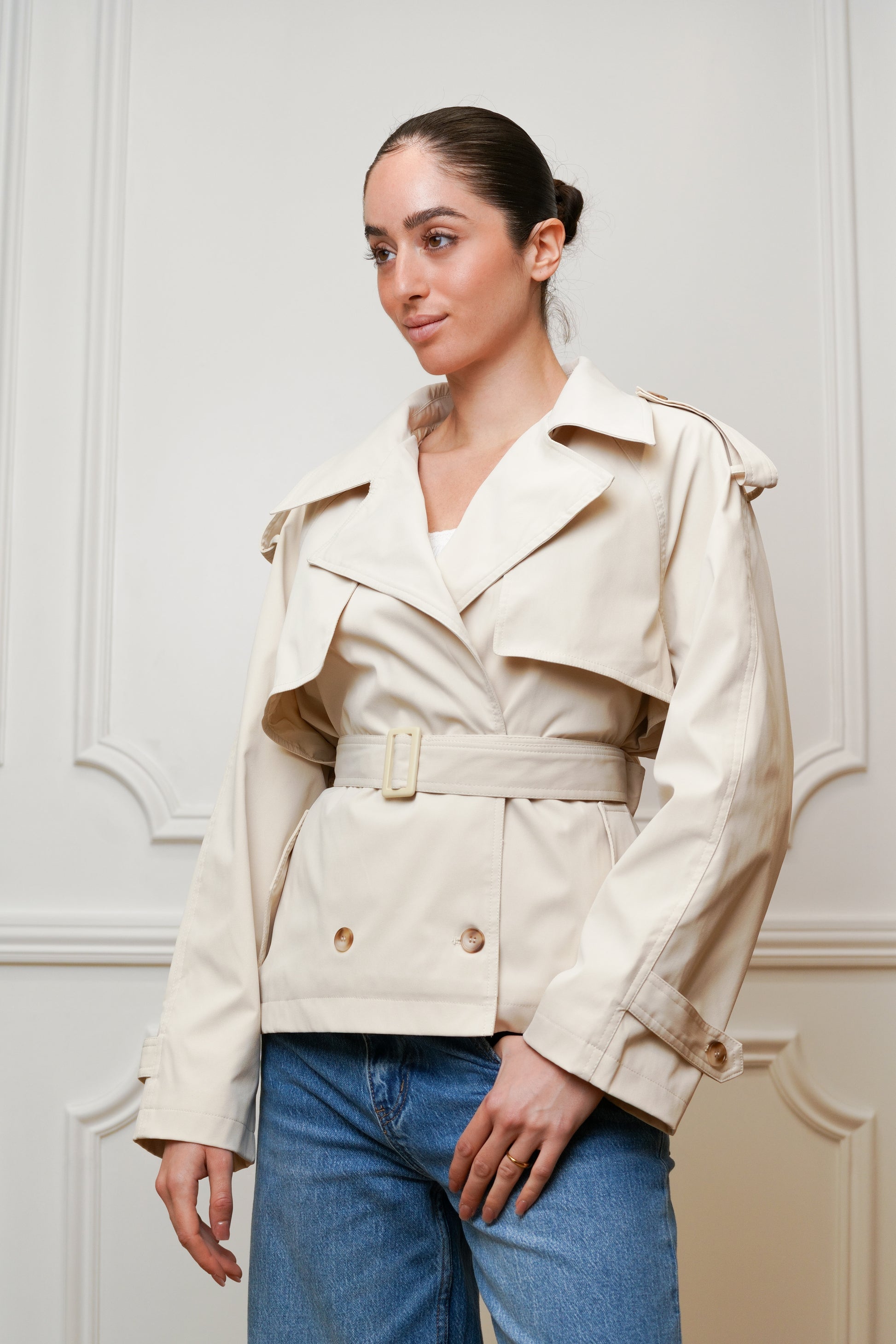 Fonctionnel et élégant, ce trench court est doté de poches pratiques et se décline en deux coloris, pour s’adapter à tous les styles. Une pièce incontournable à porter au quotidien, du printemps à l’automne.
