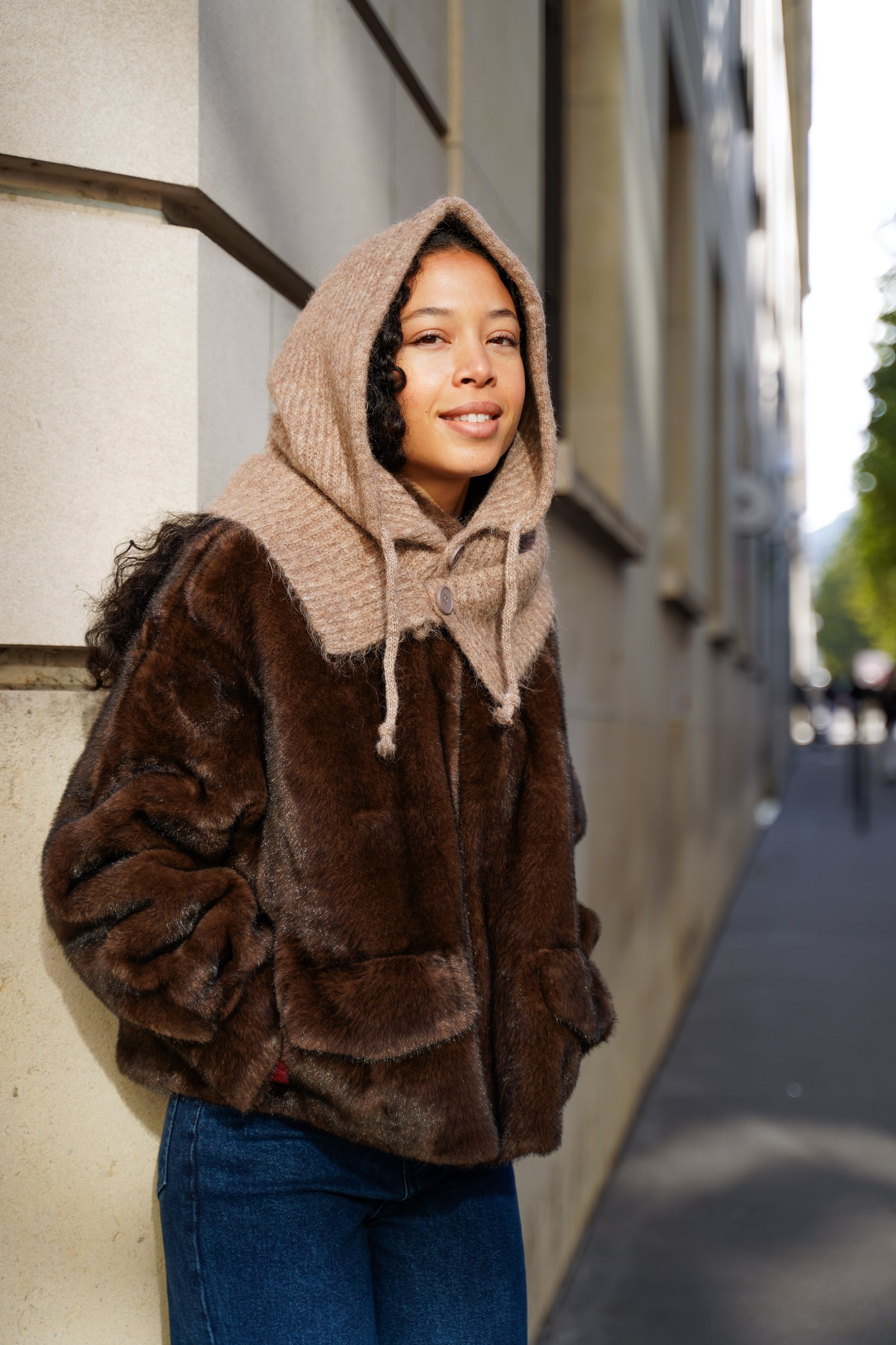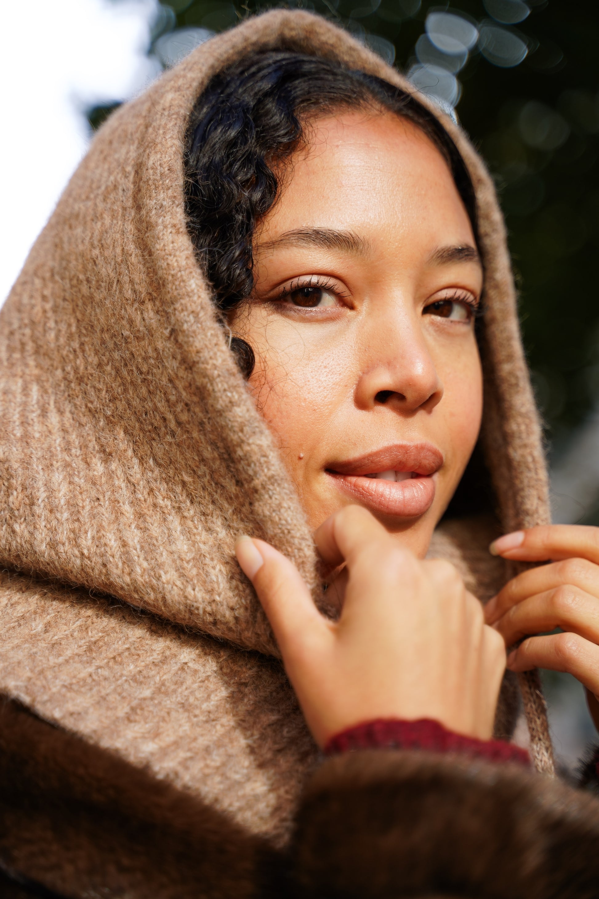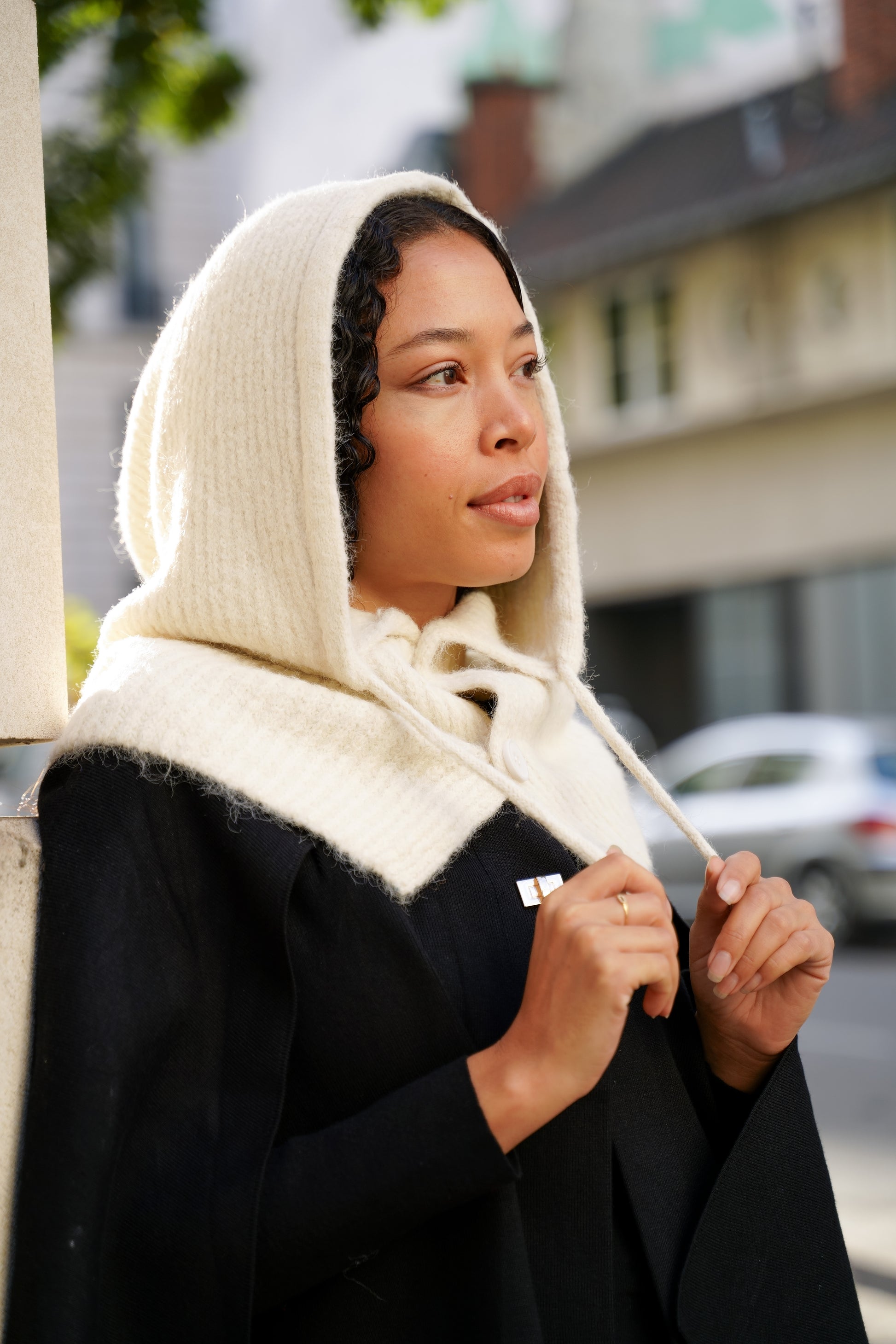 Facile à porter, cette cagoule femme se glisse sous un manteau long ou une veste de laine.