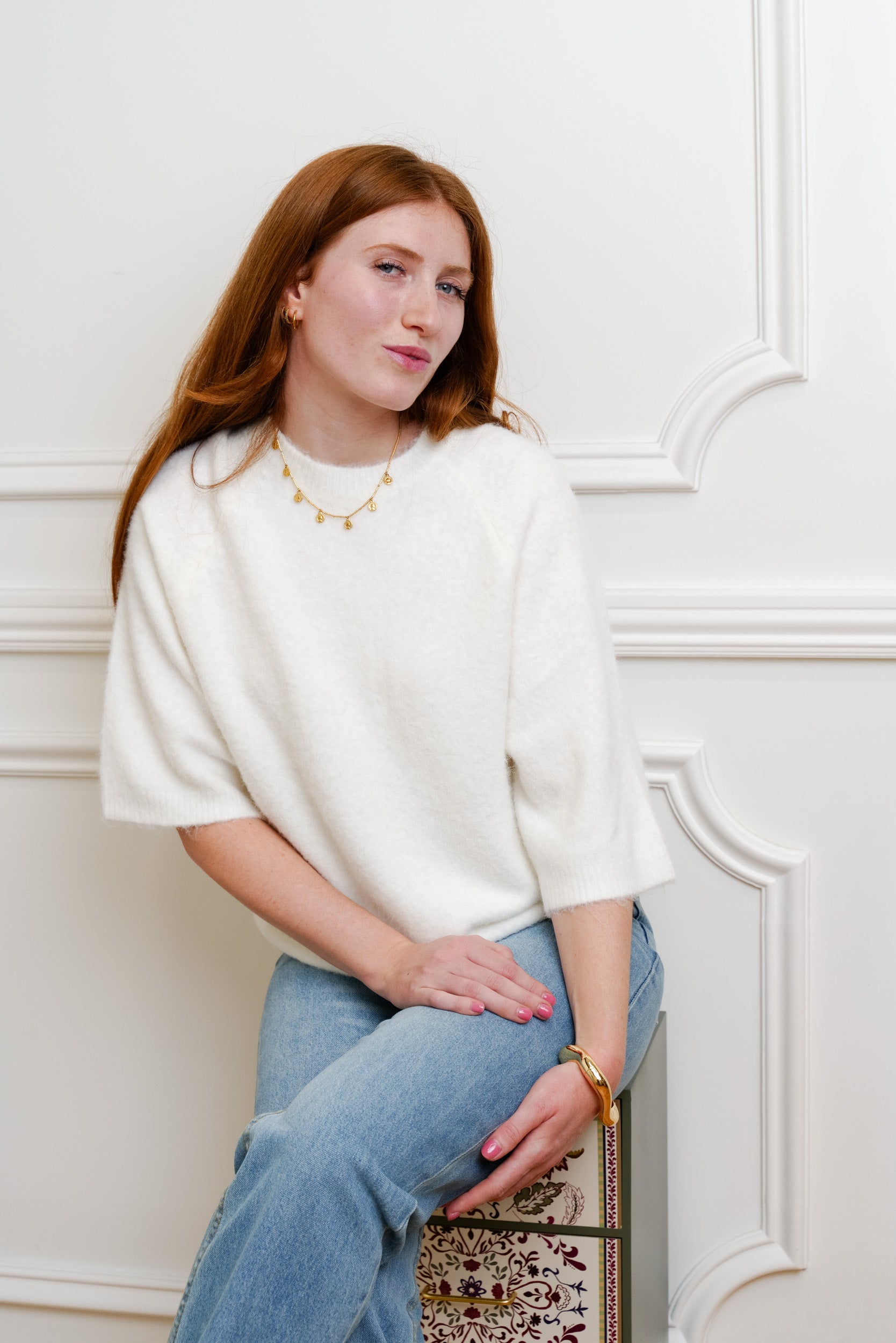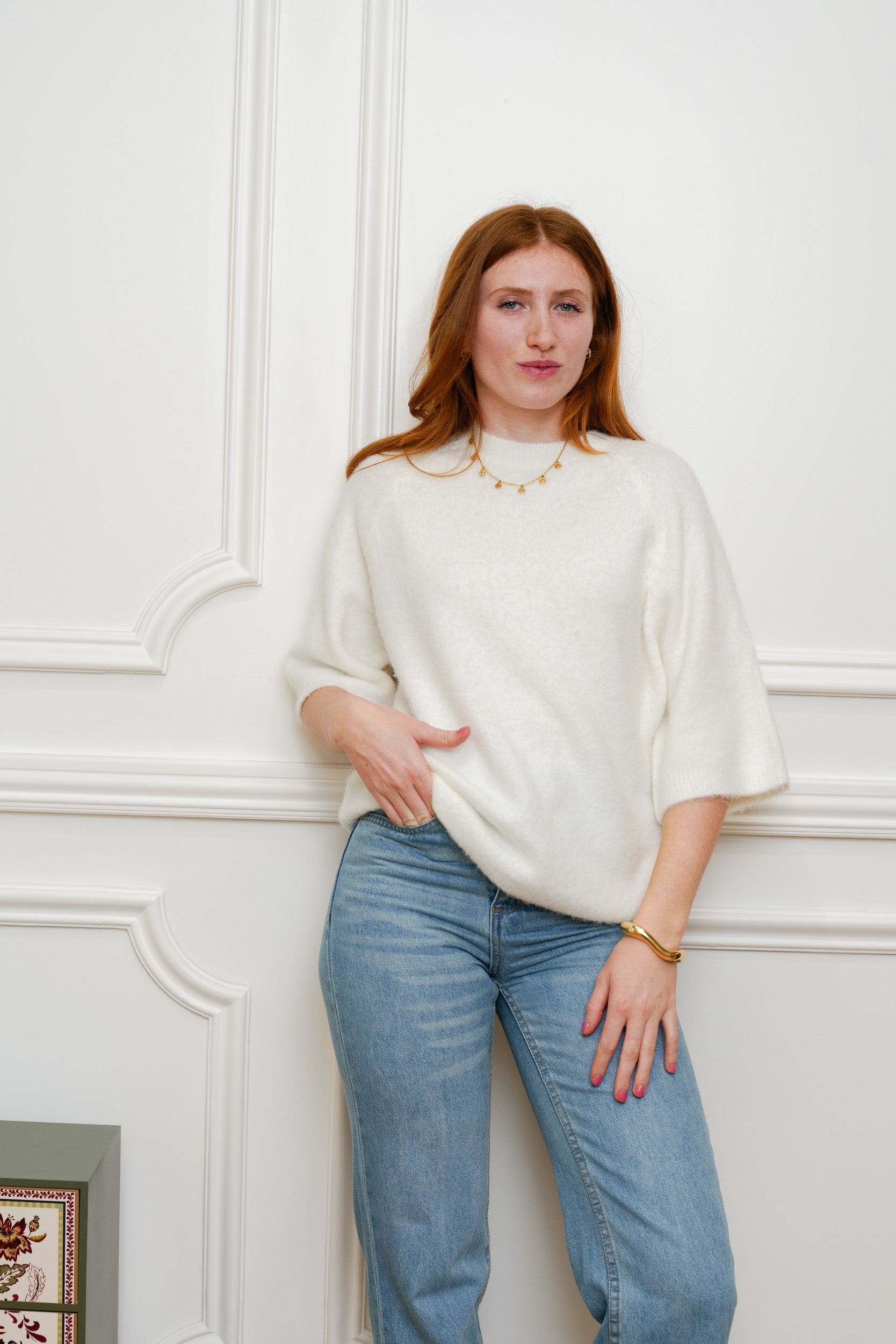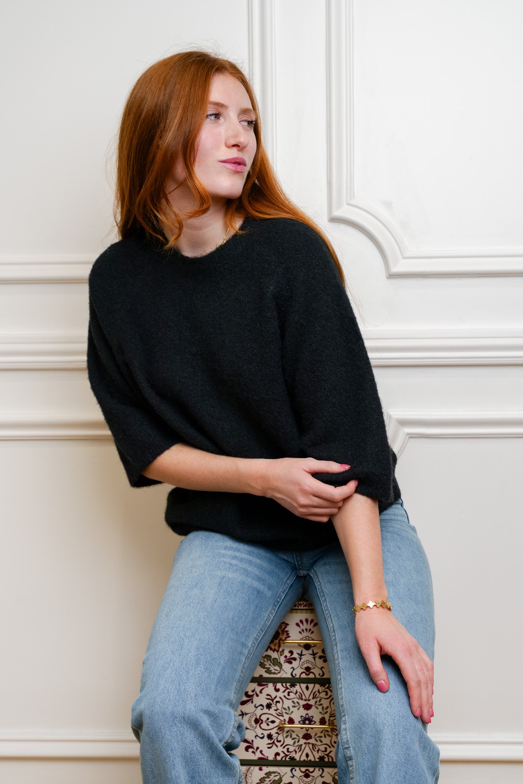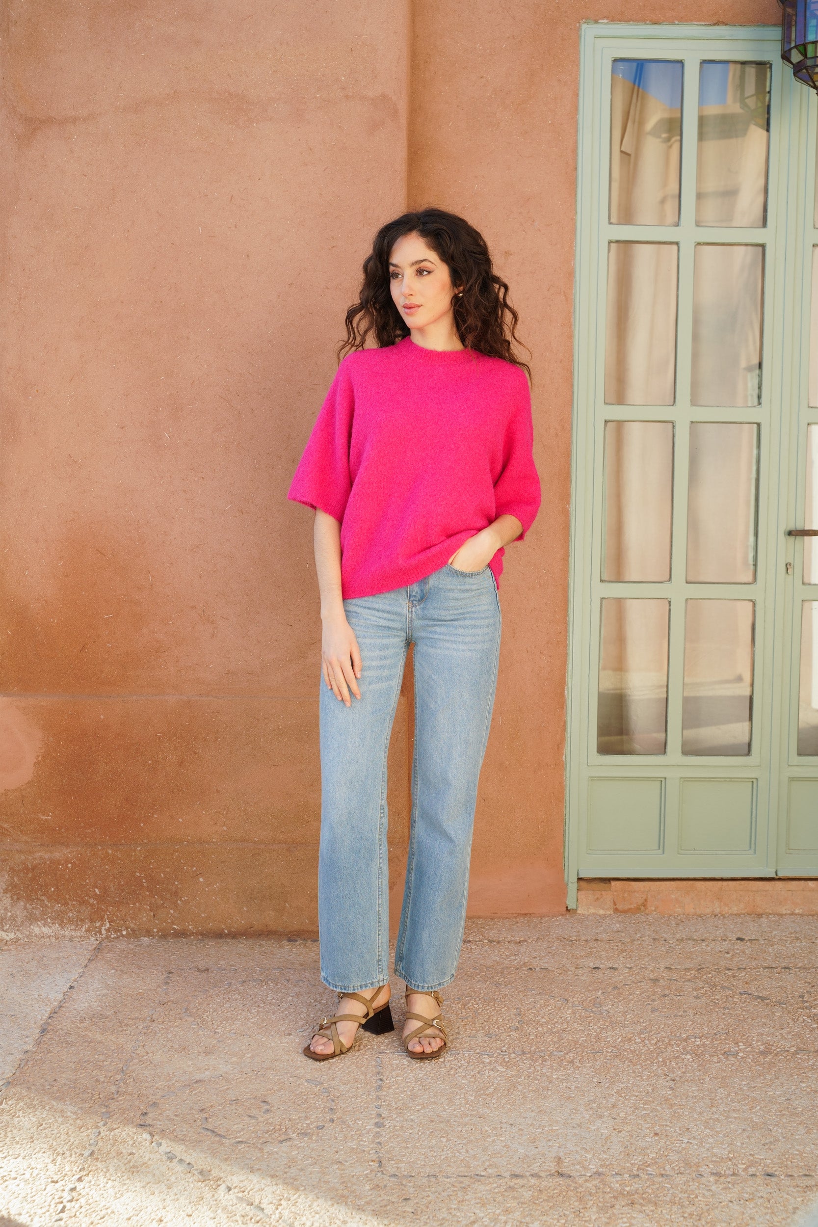 Ce pull à manches 3/4 est une pièce facile à intégrer dans le vestiaire du quotidien. Sa maille douce et sa coupe droite offrent un tombé naturel et confortable. Il se porte aussi bien avec un jean, un pantalon habillé ou une jupe, selon l’envie.