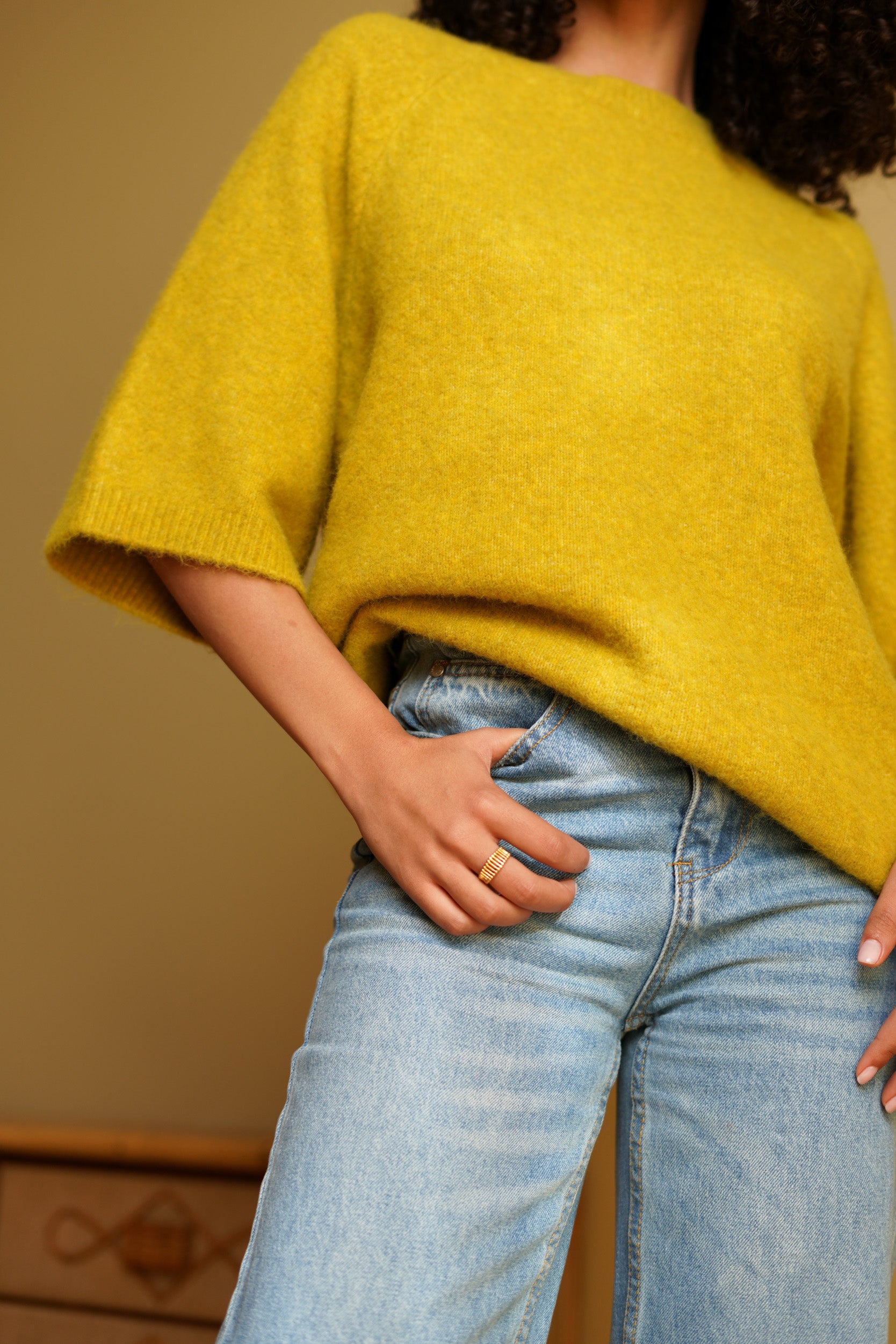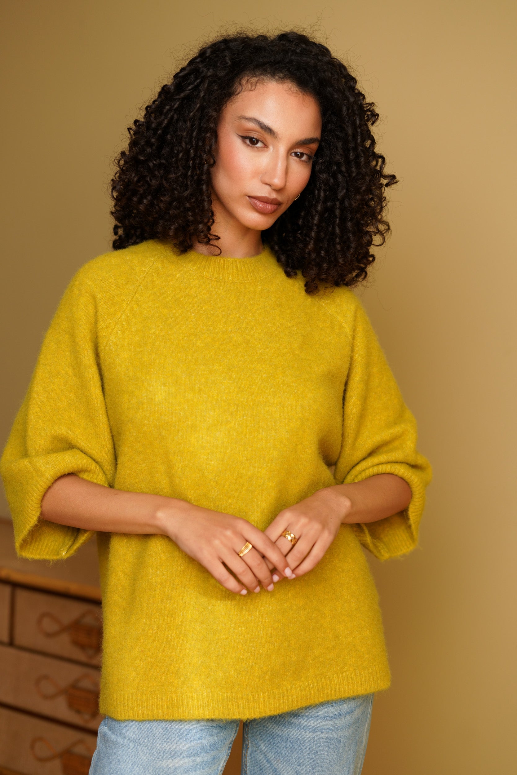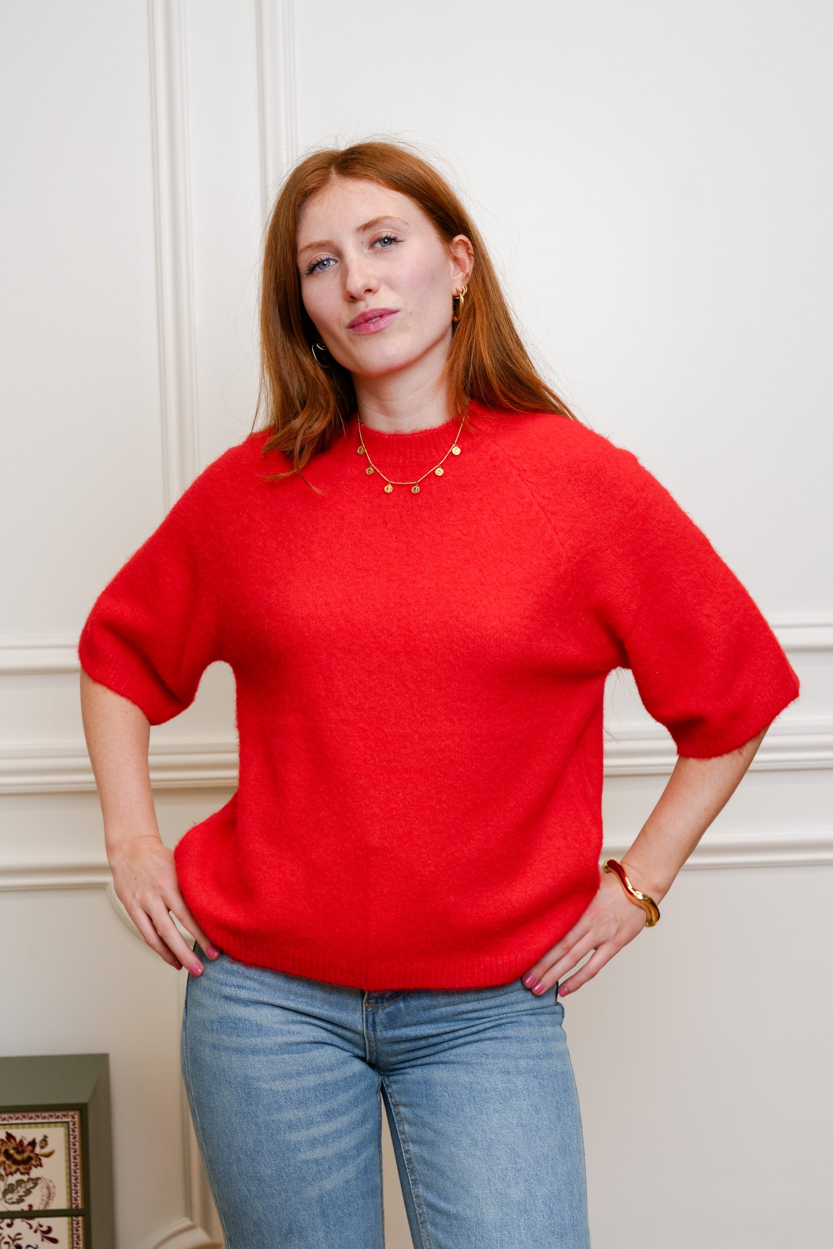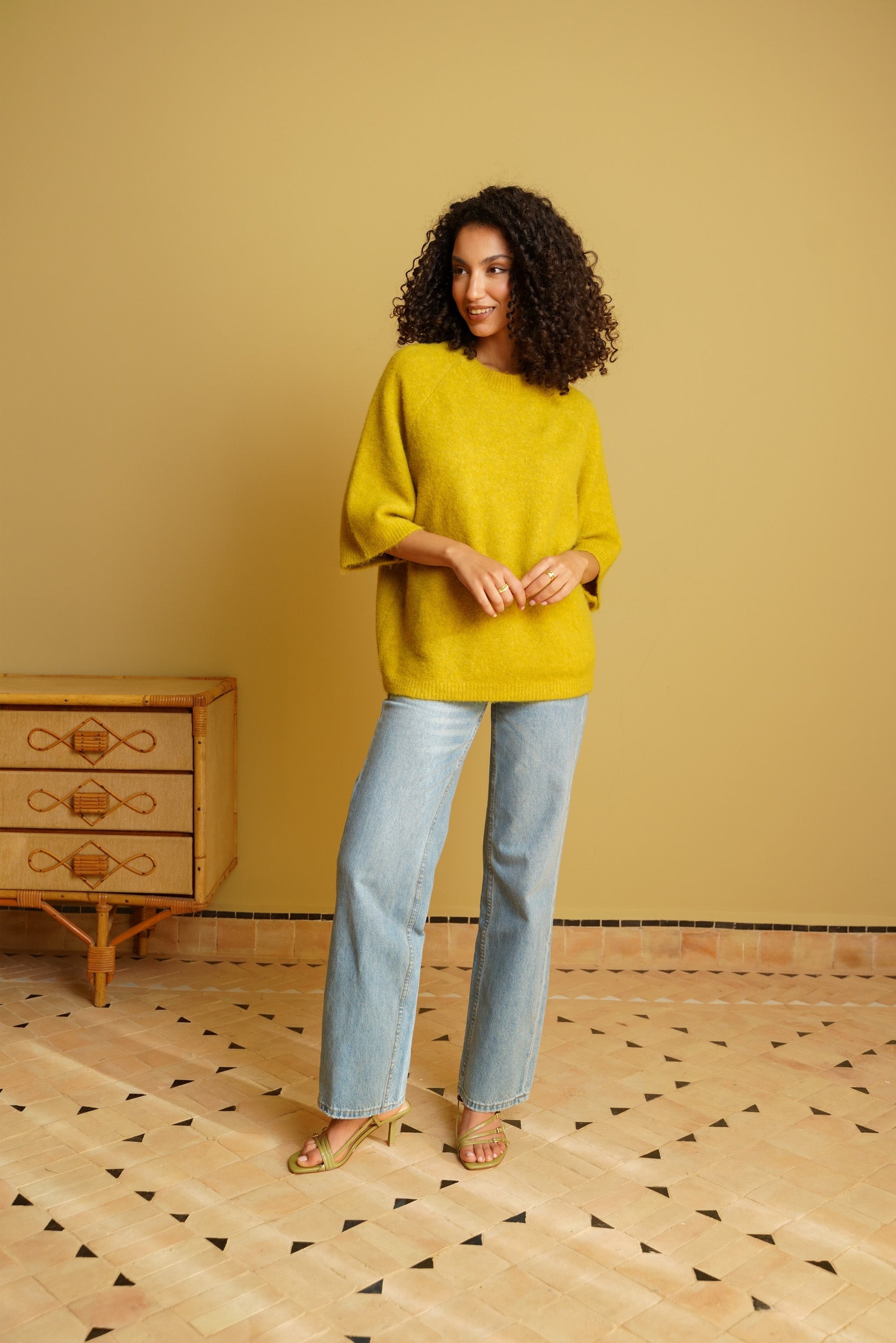 Ce pull à manches 3/4 est une pièce facile à intégrer dans le vestiaire du quotidien. Sa maille douce et sa coupe droite offrent un tombé naturel et confortable. Il se porte aussi bien avec un jean, un pantalon habillé ou une jupe, selon l’envie.