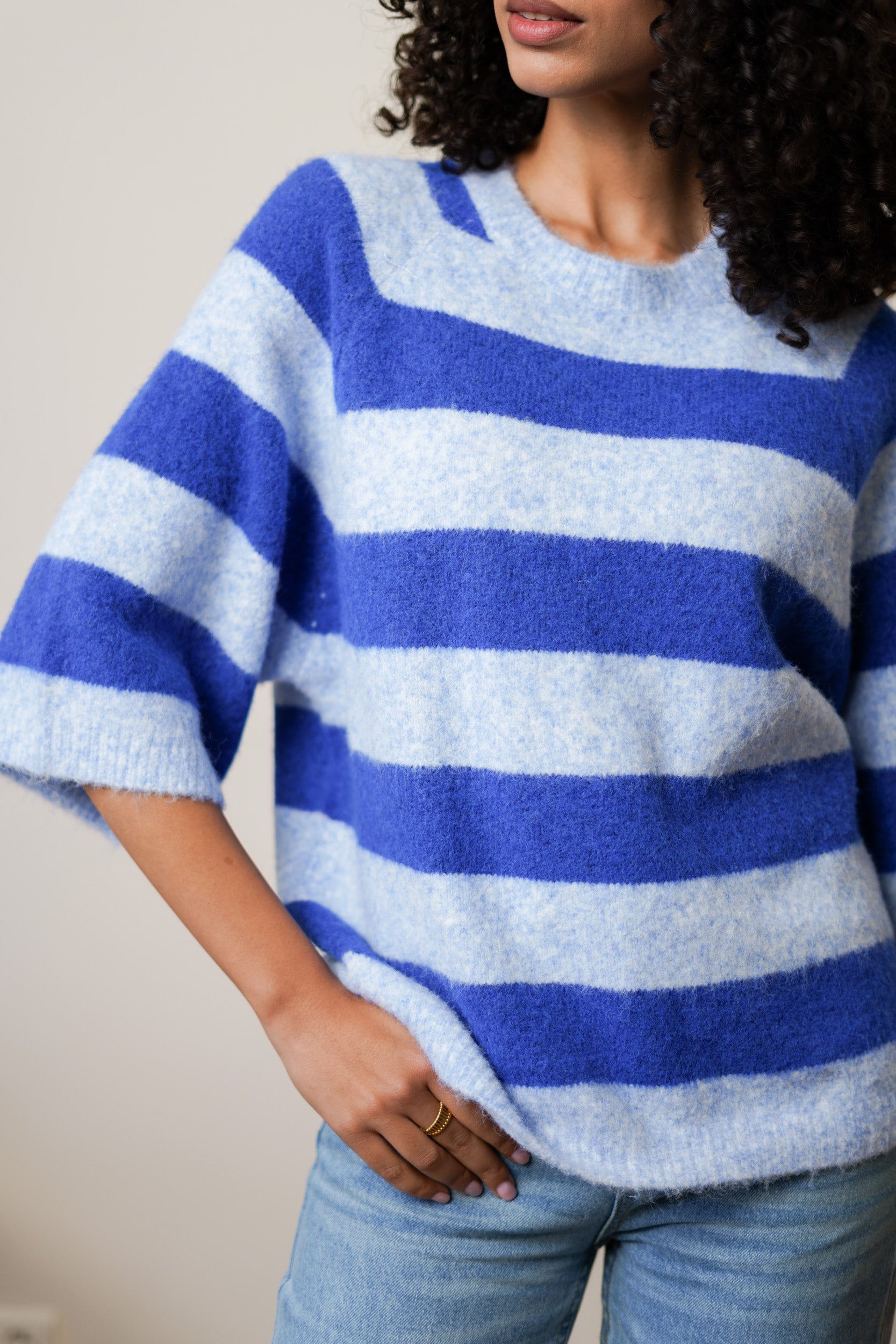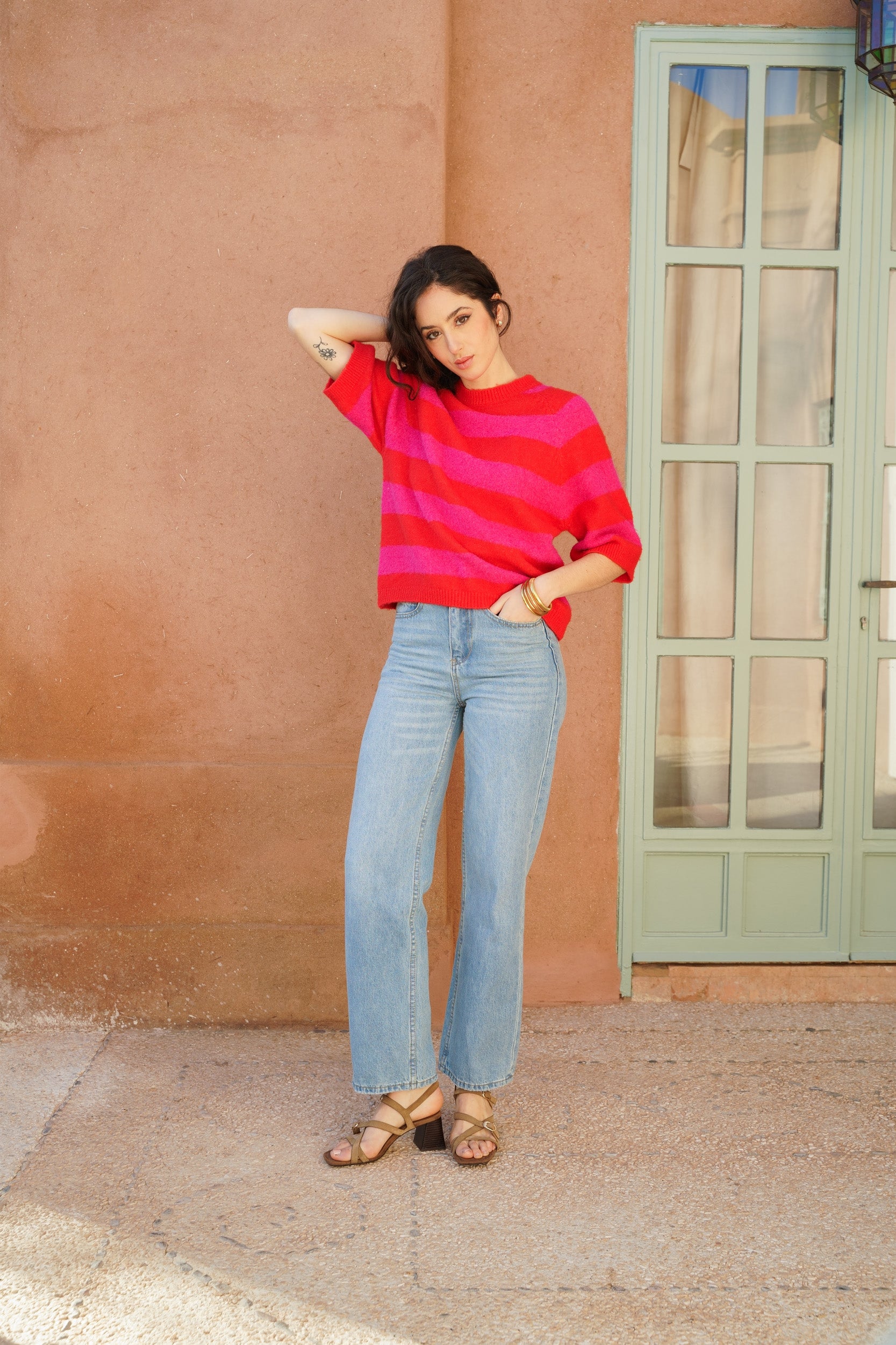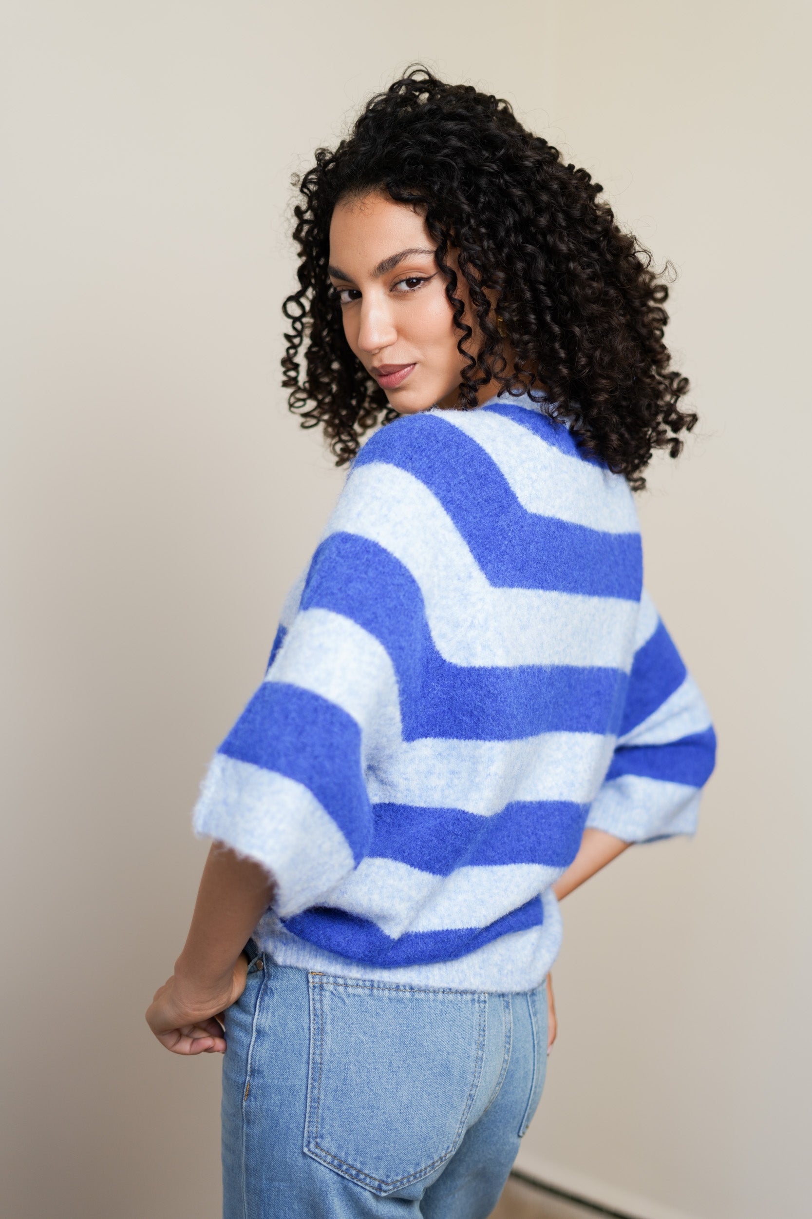 Le pull Maya à rayures est une pièce pensée pour le quotidien. Sa maille douce est agréable sur la peau et sa coupe droite tombe naturellement. Les manches au coude apportent une allure décontractée, idéale pour la mi-saison ou les journées un peu plus fraîches.