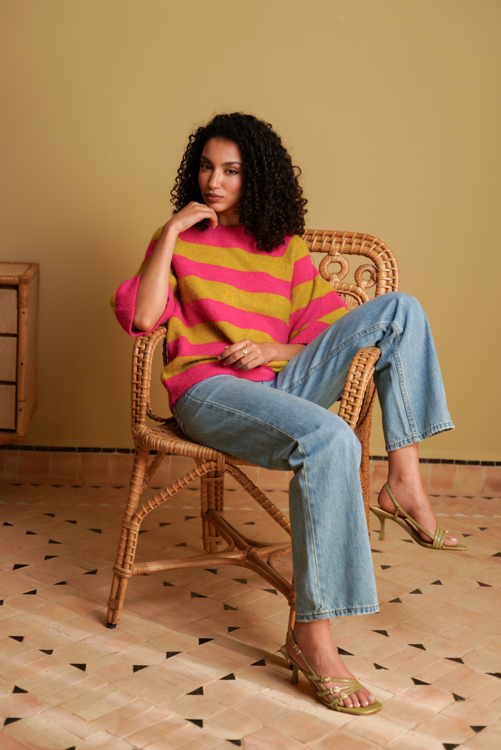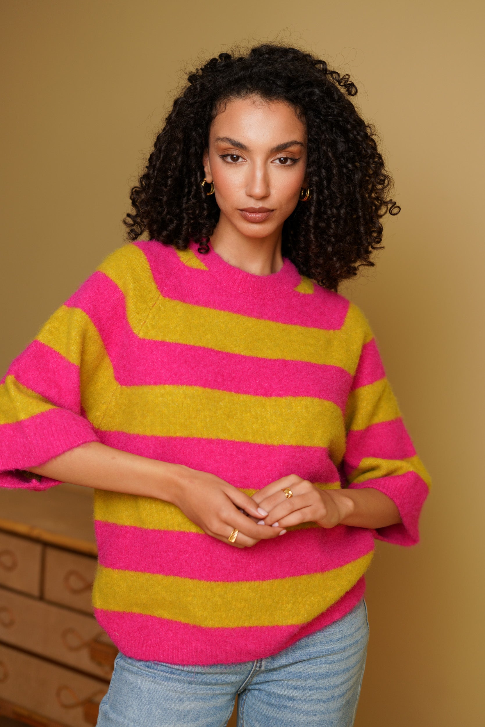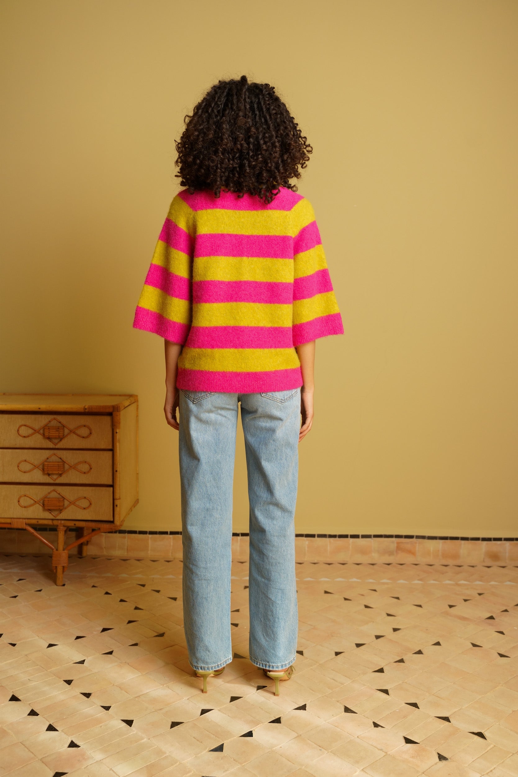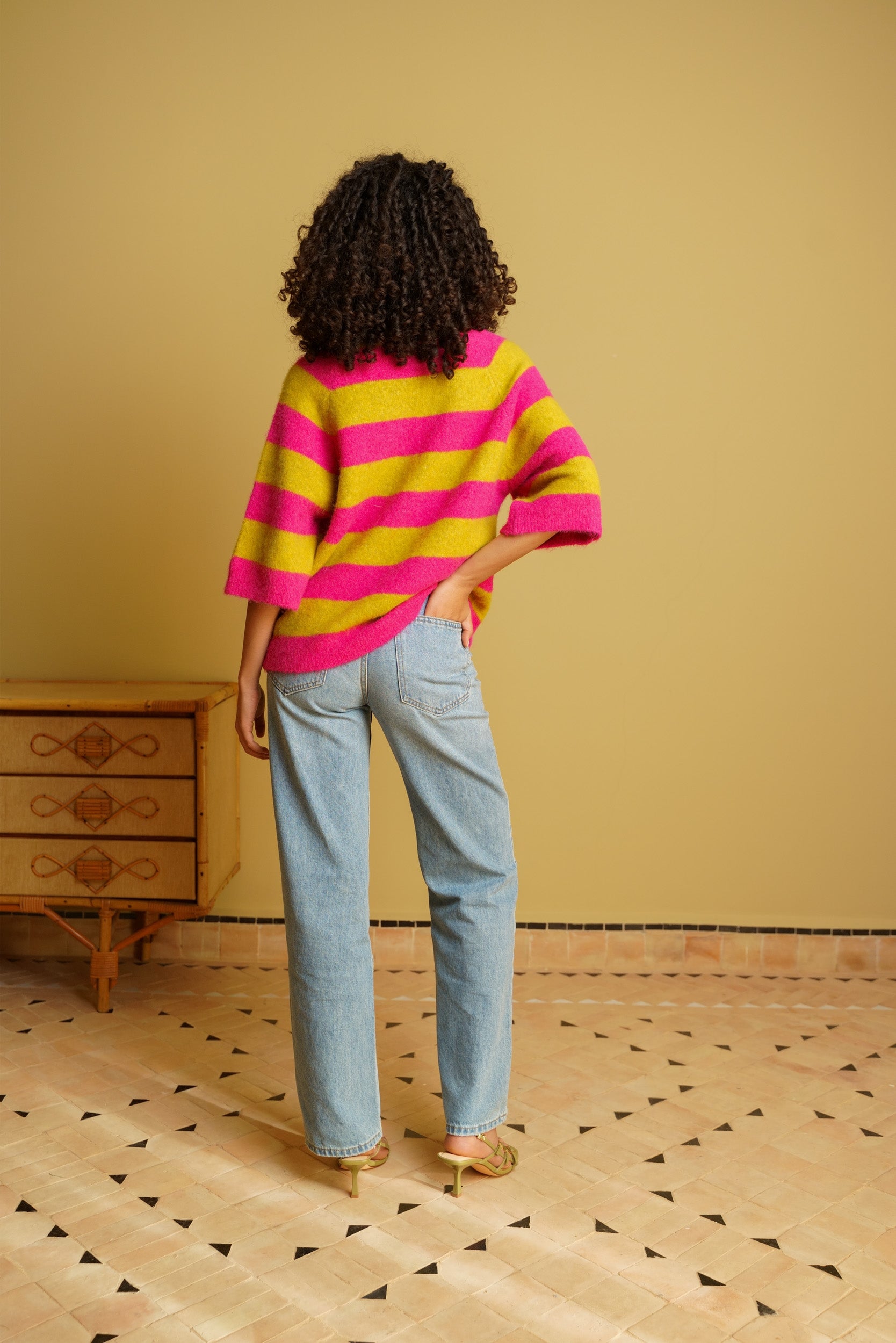 Le pull Maya à rayures est une pièce pensée pour le quotidien. Sa maille douce est agréable sur la peau et sa coupe droite tombe naturellement. Les manches au coude apportent une allure décontractée, idéale pour la mi-saison ou les journées un peu plus fraîches.