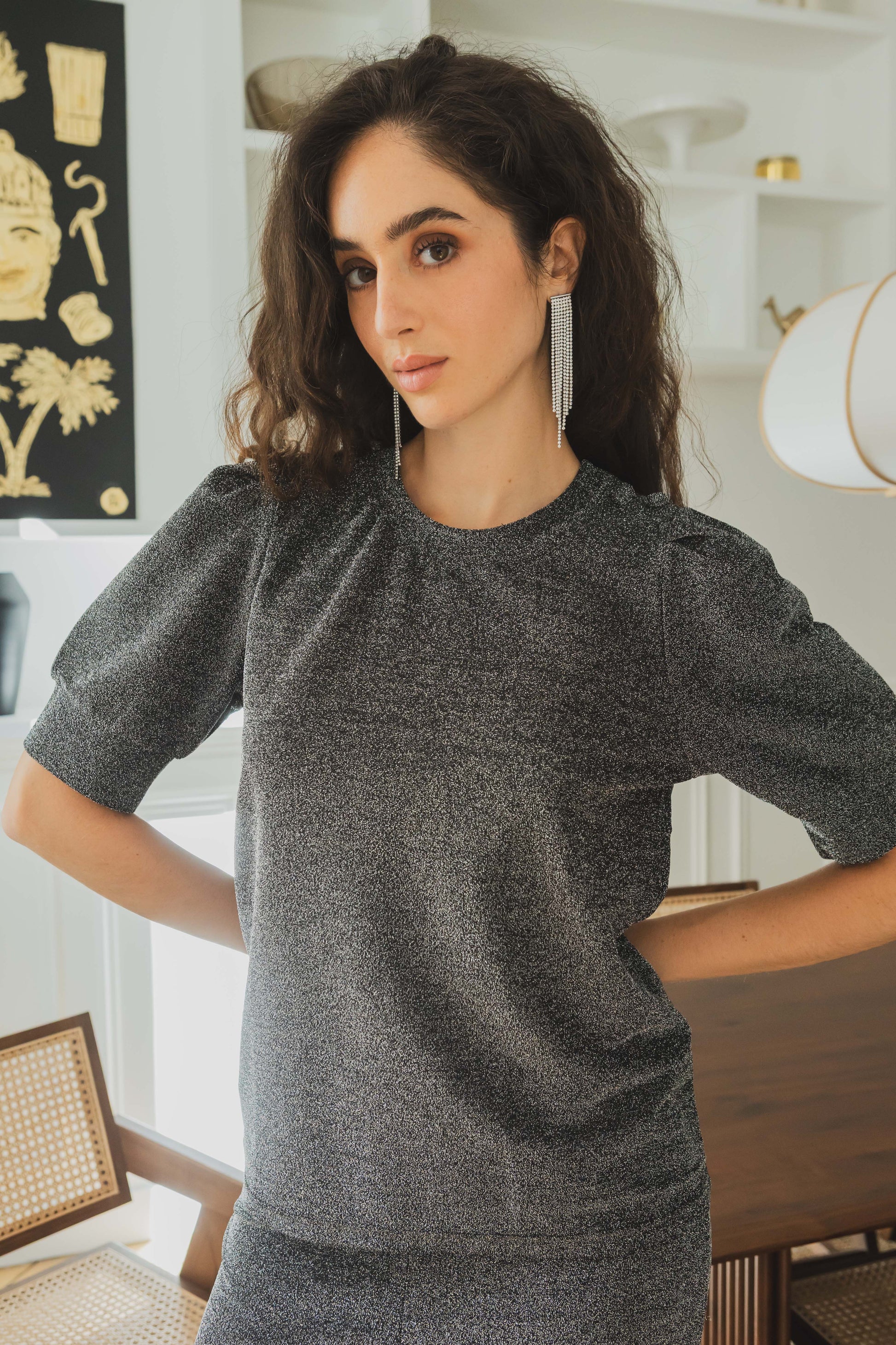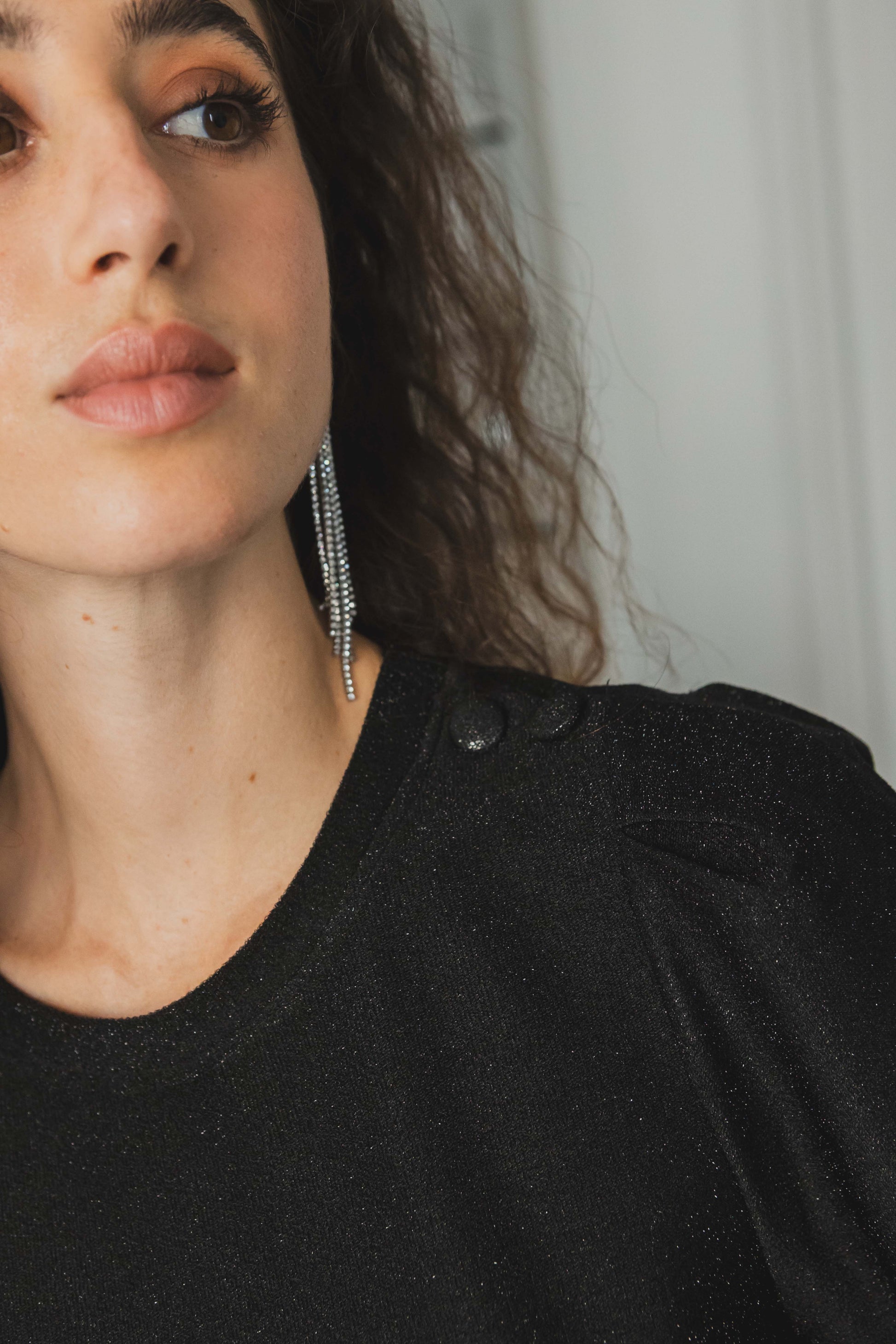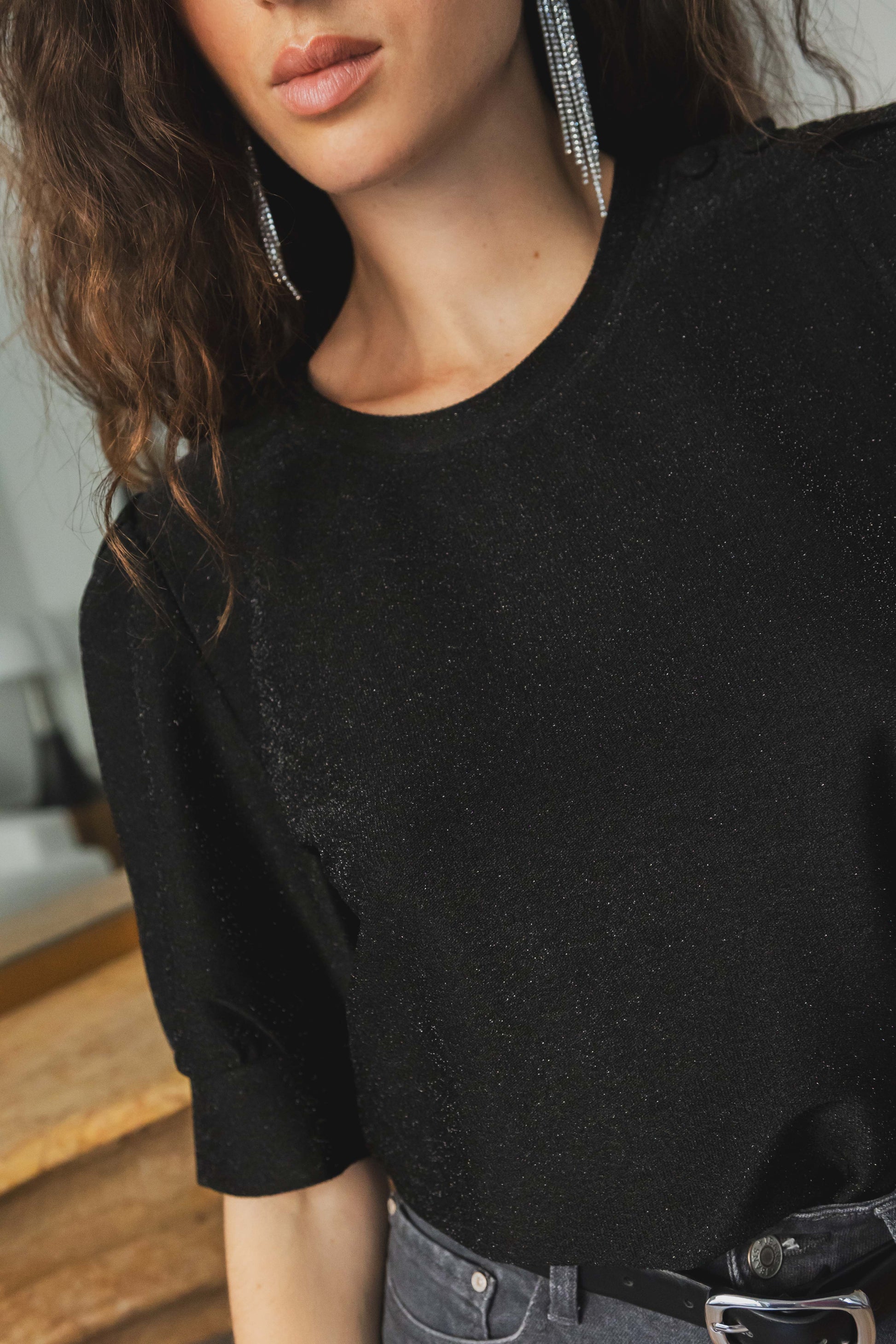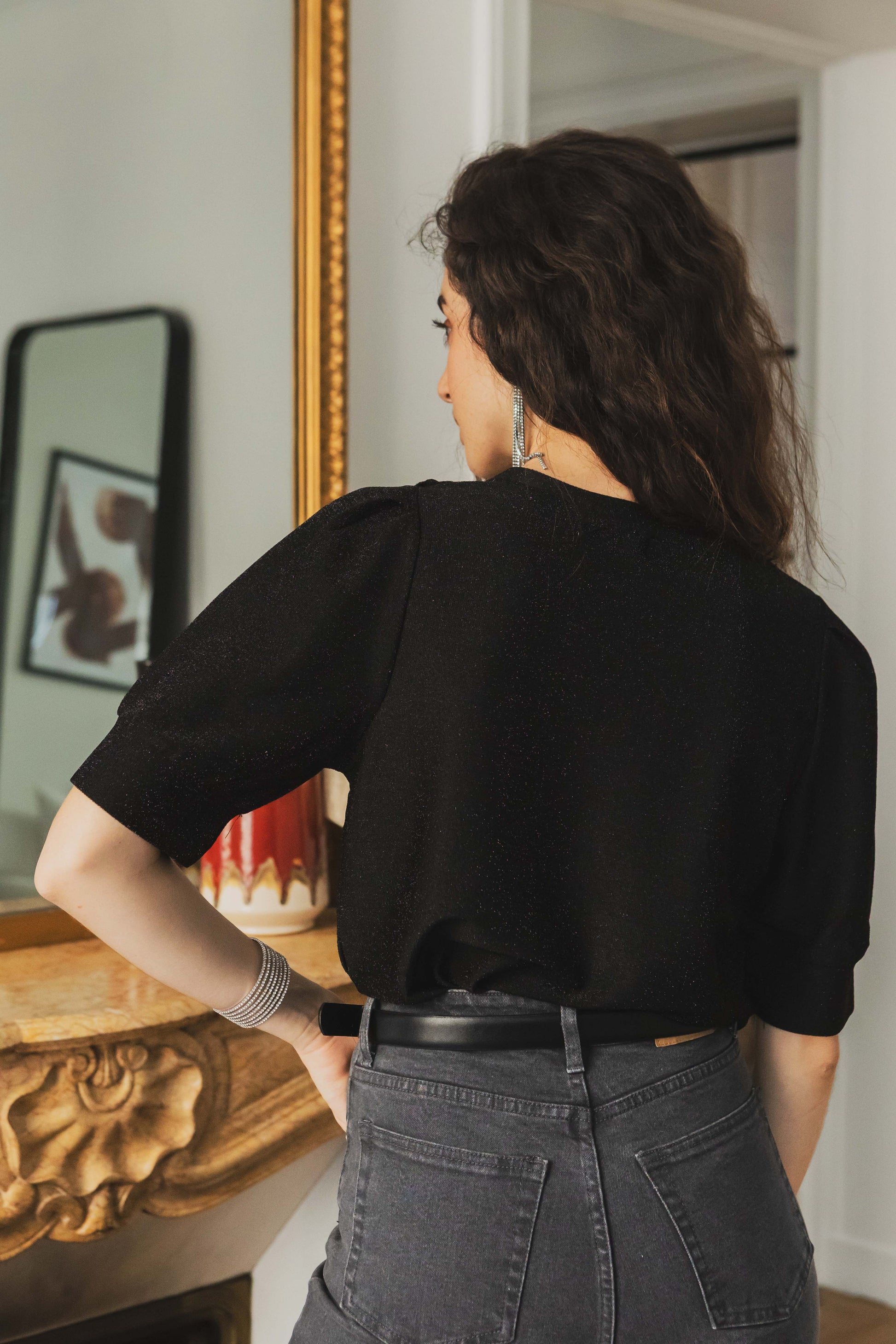 Un top pailleté facile à porter, idéal pour les fêtes ou pour illuminer vos looks du quotidien. Sa matière fluide et brillante se marie aussi bien avec le pantalon Lucie pour un total look scintillant qu’avec un jean brut pour un style plus décontracté.